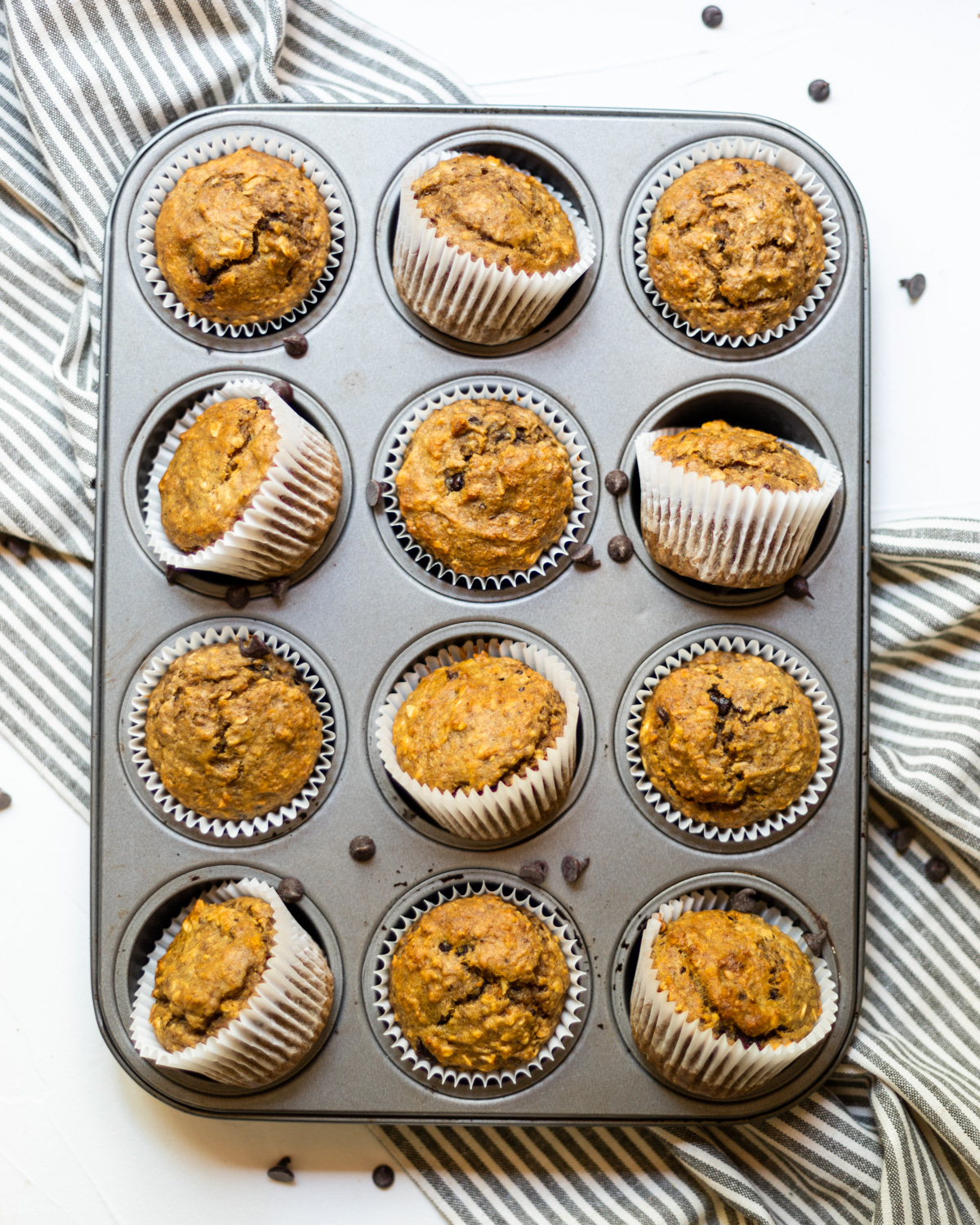 - To make Double Chocolate Muffins - add in ¼ cup of cacao or cocoa powder to the food processor at the same time as adding the flour and oats.