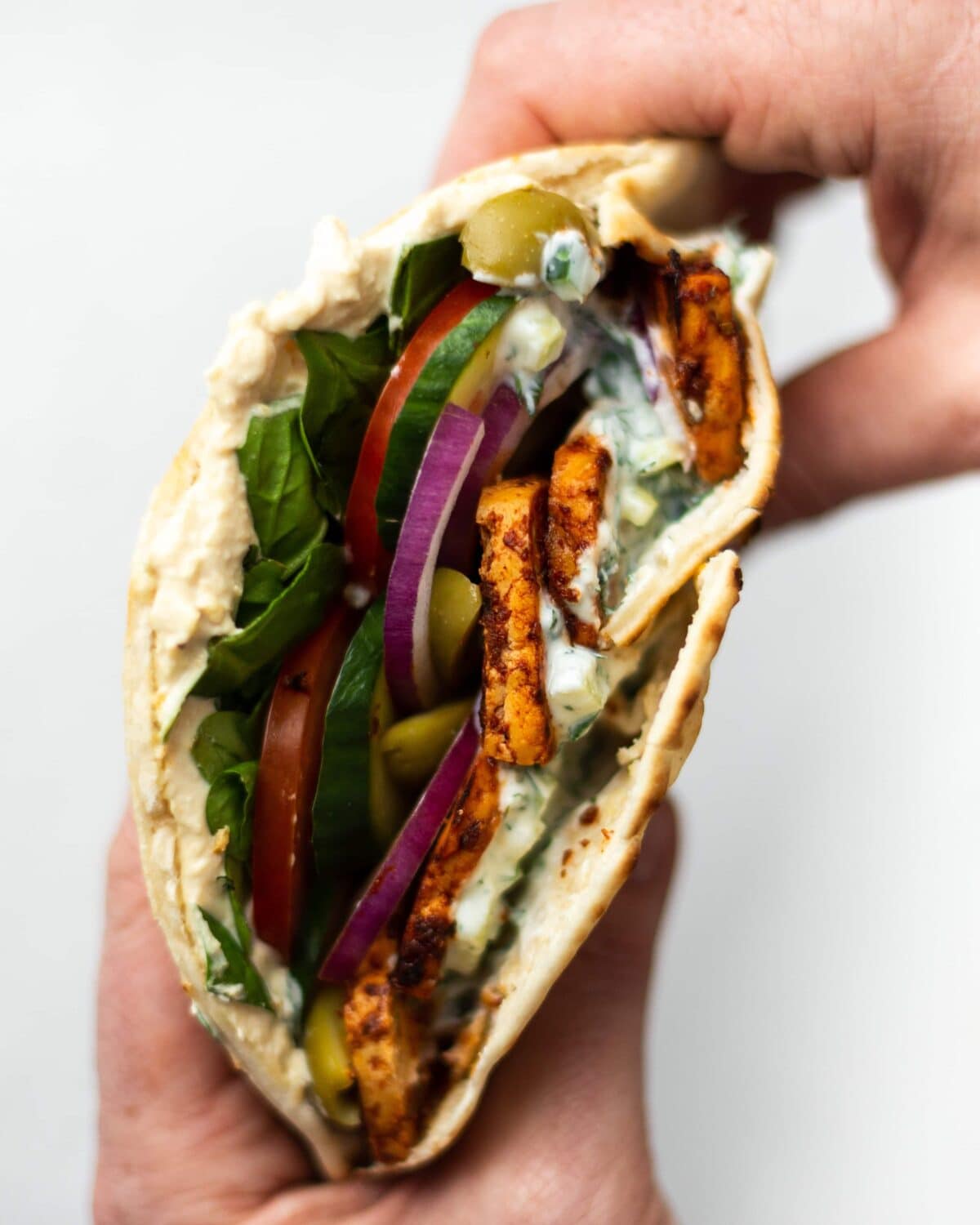 Filled with delicious Greek marinated Tofu, crunchy salad drizzled with plenty of Tzatziki, made using our own amazing Tzatziki recipe.