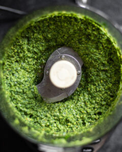 - Steps 3 & 4 - Put all of the ingredients in a food processor (3), and blitz until you have a Pesto consistency (4).